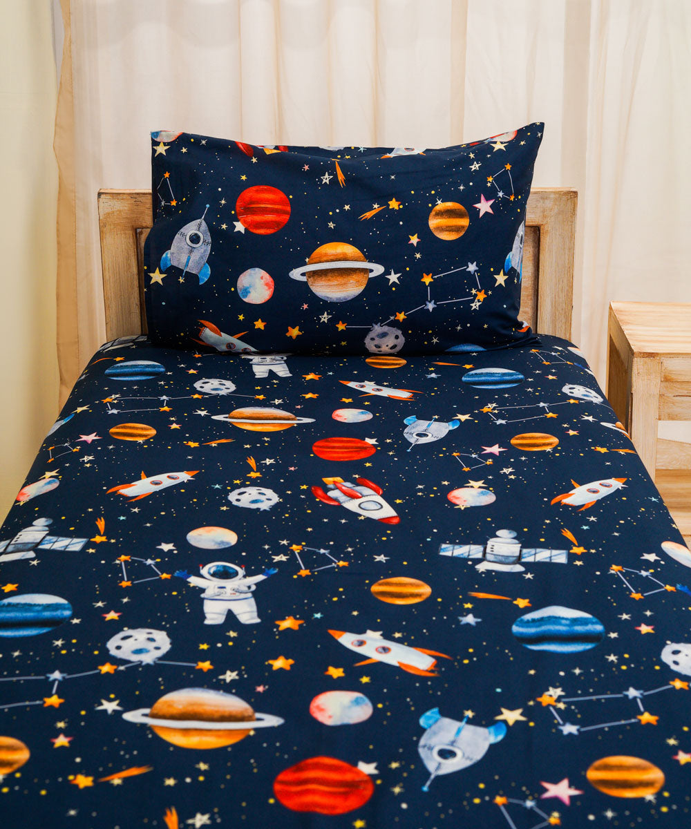 Amp up your space with our space themed fitted sheet.(Pillowcase pattern may vary slightly from the image)...