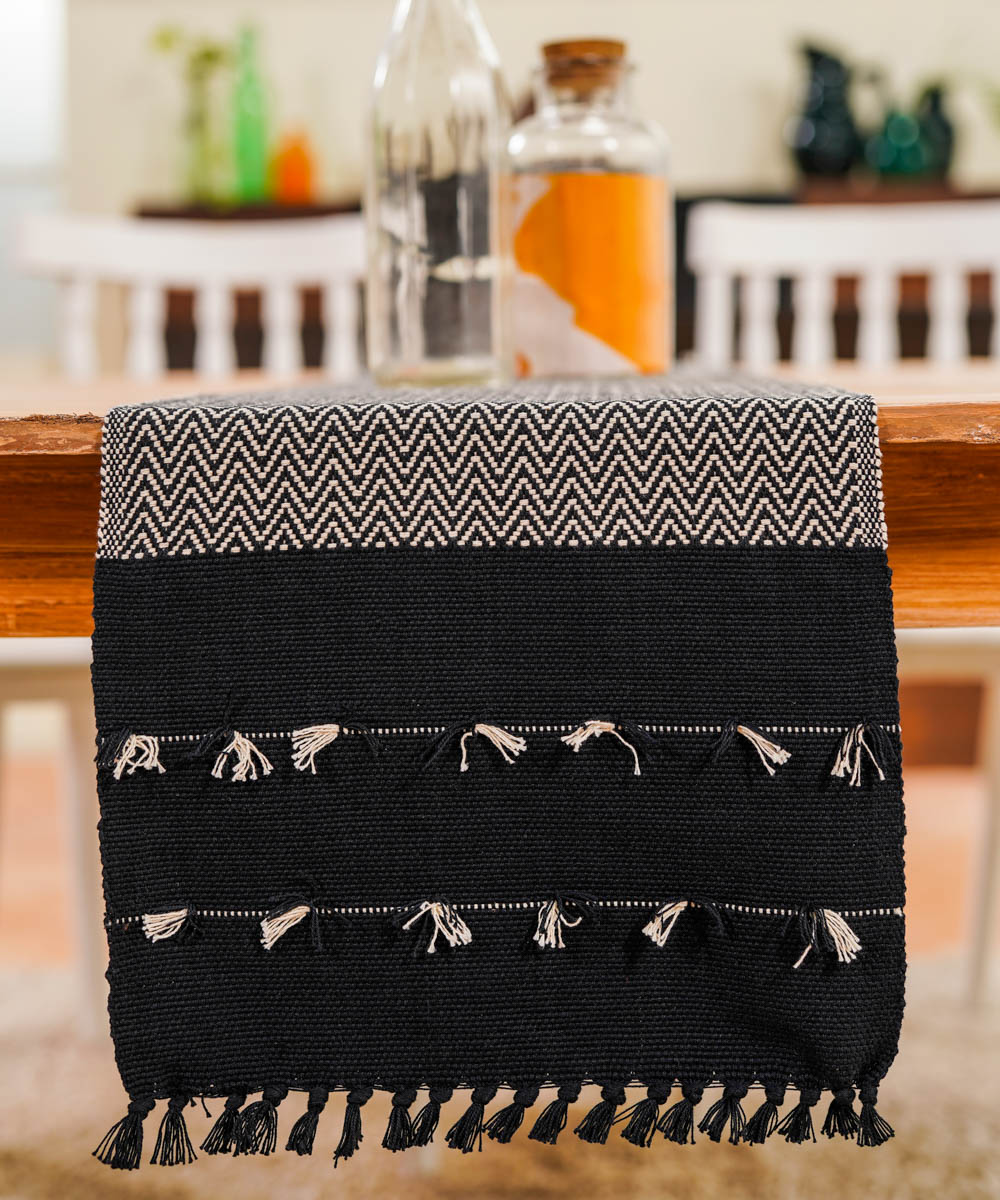 Elevate your space with our runner in woven dobby design featuring chevrons and tassels. Colour: Multi Fabric:...