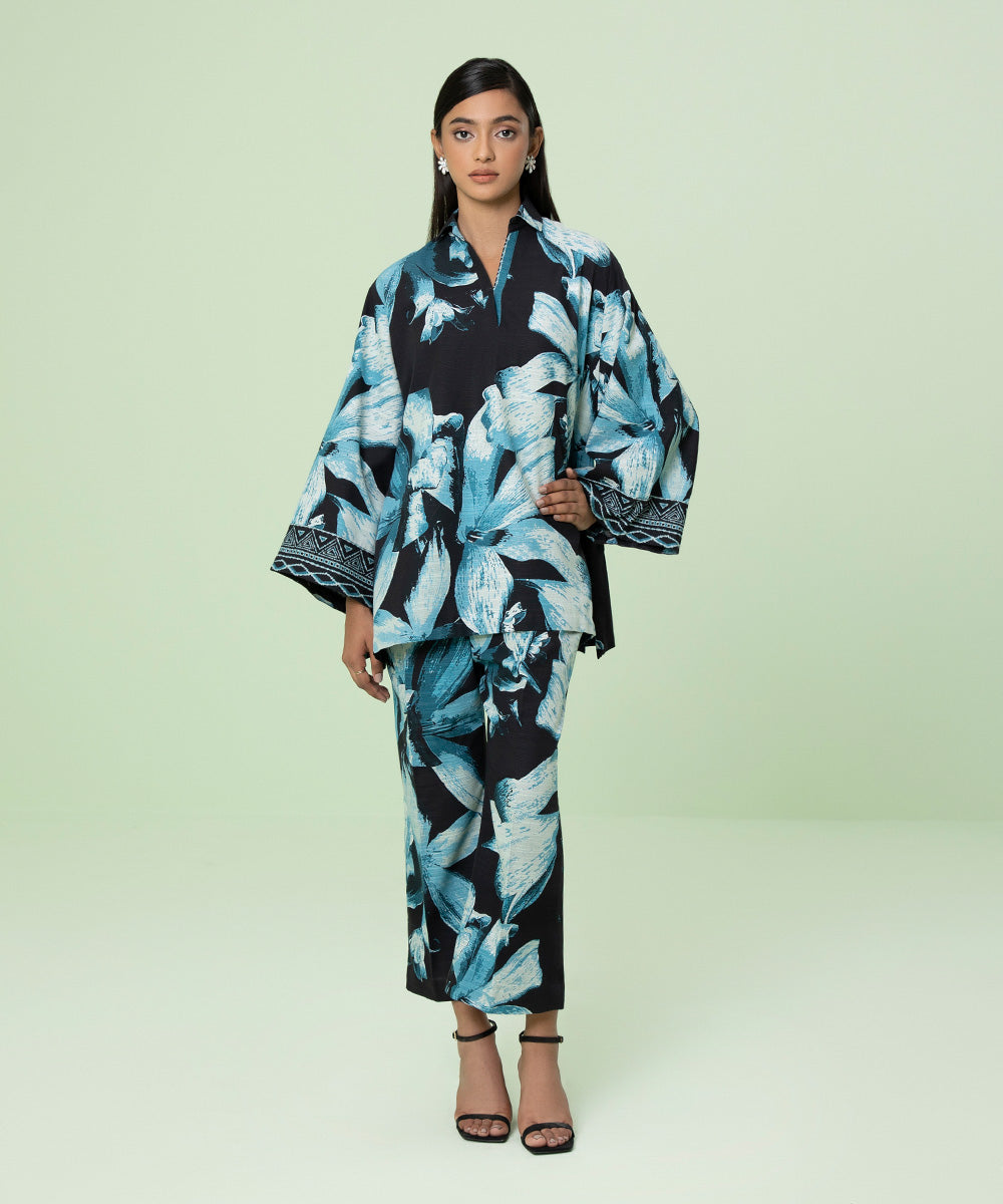 Immerse yourself in a floral dreamland with our blue ensemble featuring artistic florals. Unstitched 1-PieceShirt: Printed Khaddar...